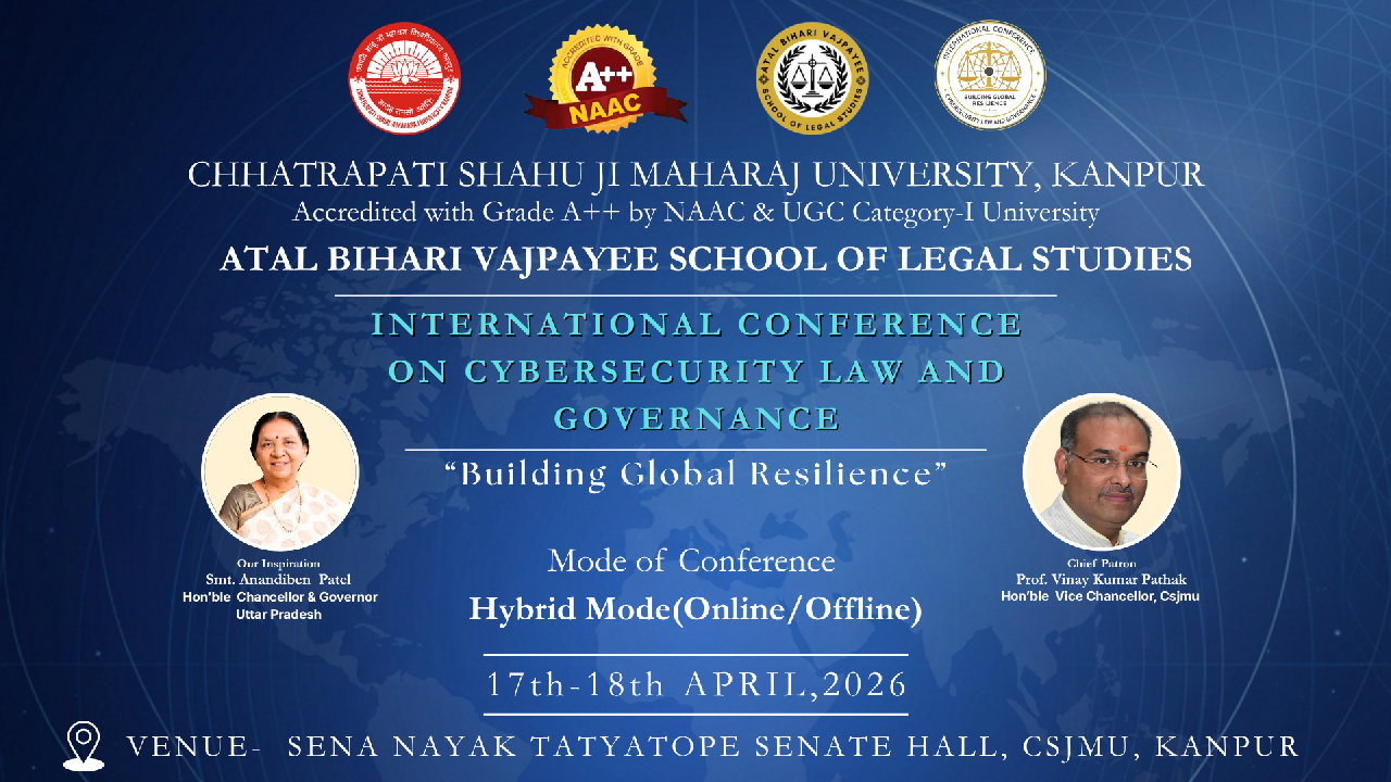 Under the guidance of Hon’ble Vice Chancellor Prof. (Dr.) Vinay Kumar Pathak Sir, Atal Bihari Vajpayee School of Legal Studies is organising International Conference on Cybersecurity Law and Governance: Building Global Resilience on 17th- 18th April, 2026 (Hybrid mode).